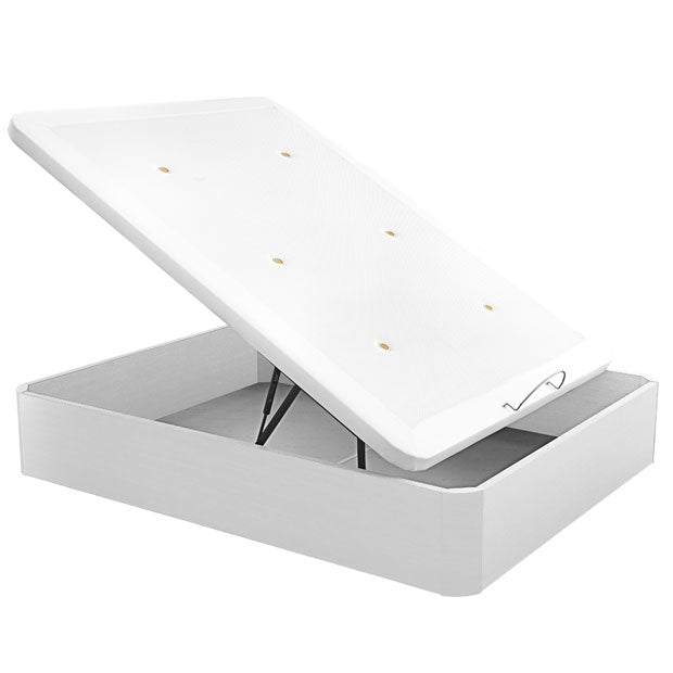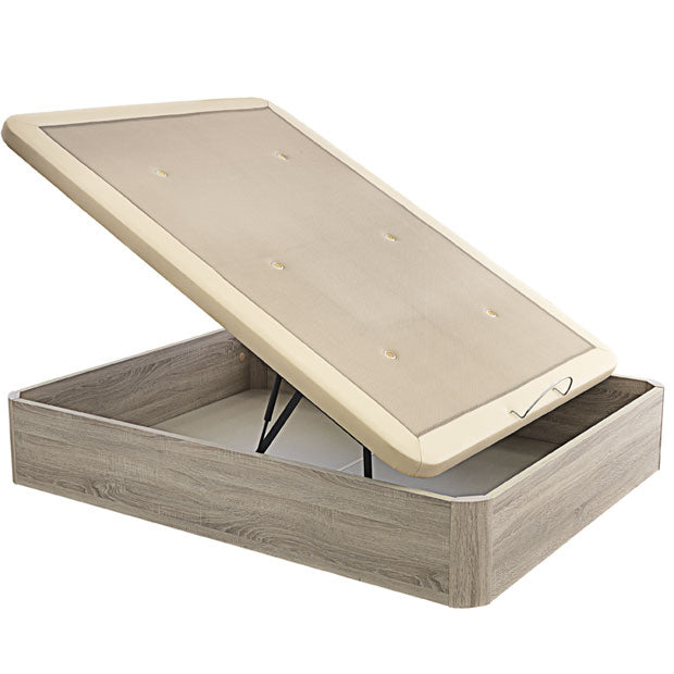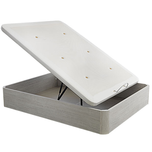 • Tapa superpuesta tapizada con contorno en polipiel y tejido 3D para mayor aireación del colchón.